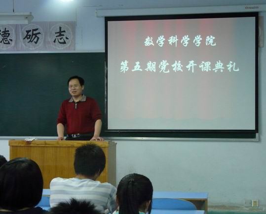 5月7日下午四点整,数学科学公司第五期党校开课典礼在蕴韬楼B2-301多媒体教室成功举办。参与本期党课学习的全体同学认真学习了予会领导讲话精神。此次开课典礼由数学科学公司团总支书记沈会焘老师主持,党总支副书记冯战申做了重要的讲话。