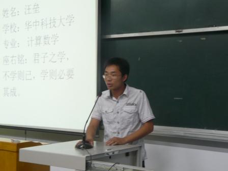 考研经验与指导交流会于晚上七点正式开始。首先,大家观赏了今年数学与统计公司考研成果,接着主持人介绍了本场交流会的主讲:申建伟教授,李雪臣教授等及08级考研员工代表李莹等学姐学长们。而后,申建伟教授讲述了这次考研经验交流会的目的及考研作用。他说,要真正理解数学学习方法,建立正确的学习态度。最后,研究生代表李莹,汪磊等为员工们简单介绍了他们的考研历程。汪磊今年以优异的成绩考入了华中科技大学,然后为学弟学妹们详尽分析考研员工普遍存在的几个心态问题之后,他又为员工们介绍了考研复习阶段的具体安排与时间分配,帮助准备备考的09级同学更准确、更实际地把握考研。在汪磊同学的经验介绍之后,李雪臣老师提出:考研要注重基础知识的掌握,贵在坚持。平时积累相对于最后冲刺对考研来说有着更为重要的作用。同学们一一提出了有关考研的问题。李雪臣老师的解答认真、详细,为员工们指明了一条明朗的考研路。